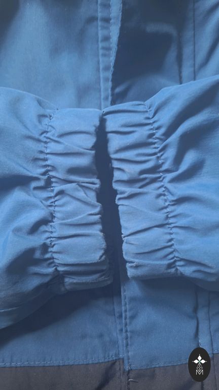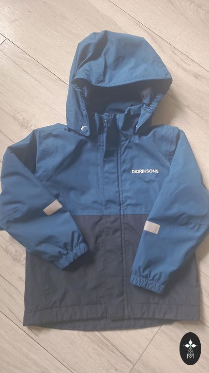 Kapuutsiga teksajakki, paar korda kantud. Kapuuts on eemaldatav. Suurus on märgitud 116, kuid see on väike.