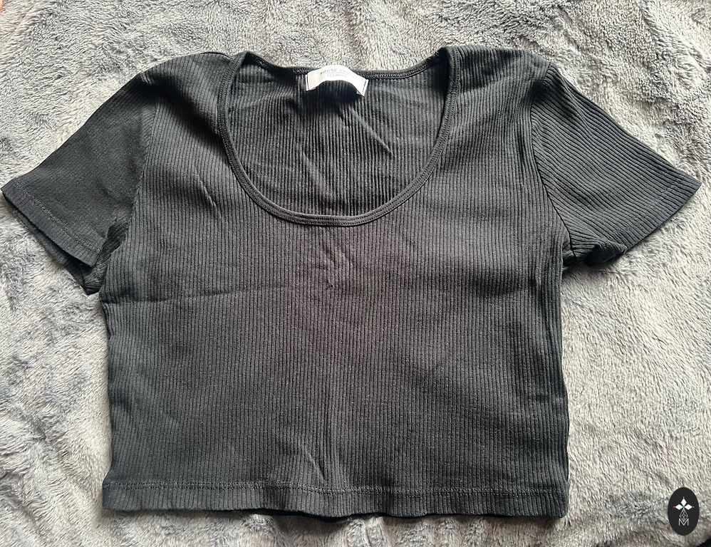Märgitud on suurus L, kuid suurus M tundub paremini sobivat. Rindkere ilma venitamiseta – 88 cm. Pikkus – 65 cm.