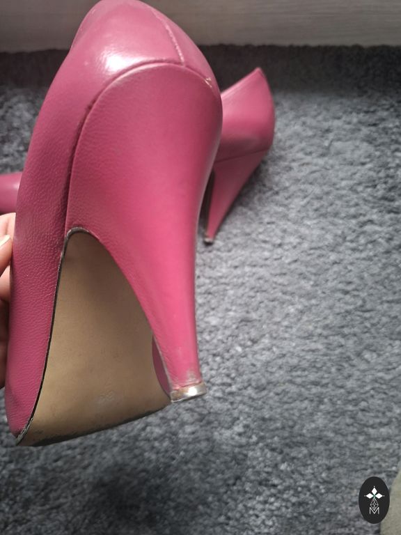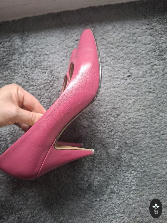 Šviesiai pilkos spalvos su sidabriniais apvadais. Labai patogios. Pažeistas kulnas (raukšlė)2. Nuotrauka. Kulno aukštis 5 cm. Pado piršto dalis nusidėvėjusi.