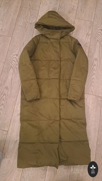 Hugo Boss talvemantel. Mantel on suurus XS, kuid see on ülemõõduline, seega oleks parem valida suurus M. See sobiks isegi suurusele L, kuid siis võib olla raskem panna alla midagi paksemat. Taskul on salapärane plekk, mis on eemaldatav, kuid sõltuvalt valgustingimustest võib see olla märgatav või mitte. Teise taskul on kangas kulunud. Laius kaenlaalustes 56 cm, pikkus 91 cm. Tõmblukud on lahti tulnud.