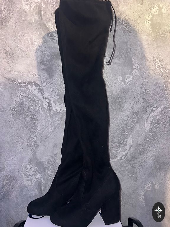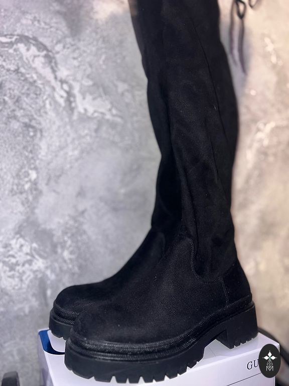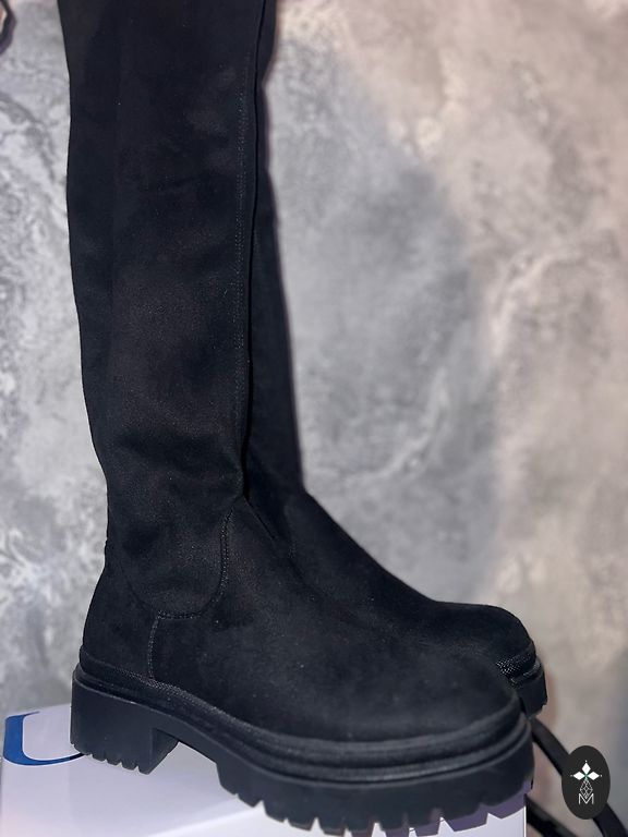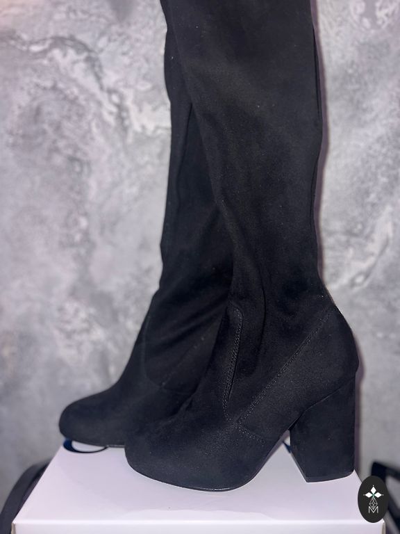 36 dydžio ilgi juodi zomšiniai batai.
