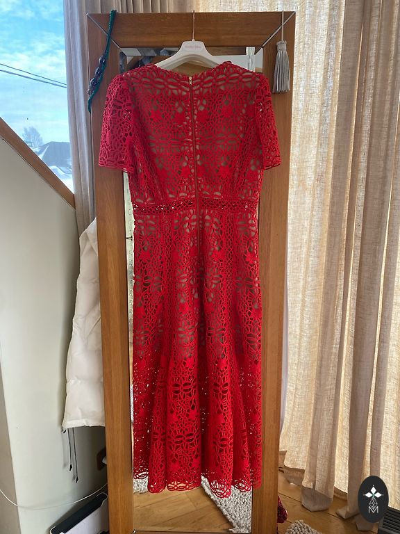 Latvijos dizainerio suknelė, universali, gali būti dėvima kaip kokteilinė suknelė arba darbe; taip pat gali būti dėvima su palaidine po ja. Midi/mini ilgio. Labai storas lino audinys, galima sakyti, kad nesiglamžo. Įsigyta iš „Latvijas pērles“. Matmenys: pečių plotis (nuo rankovės iki rankovės) 71 cm, krūtinė, talėja, klubai 57 cm, ilgis priekyje 89 cm, o gale 96 cm. (+siuntimo išlaidos)