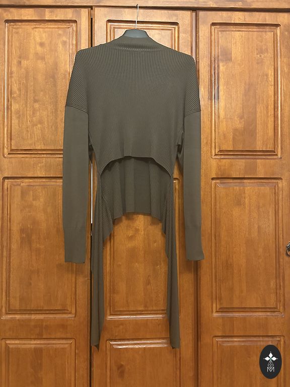 Jauns adīts tops/veste, uz birkas M izmērs. Materiāls: pamatmateriāls - 80 % akrils, 30% poliesters. No paduses līdz padusei apkārtmērs: 120 cm. Kopējais garums: 74 cm. Zīmols: Think positive. Mīksta, ērta, skaistā rudā / terakotas krāsā. •Manuprāt derēs M/L/XL.