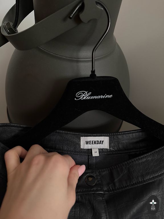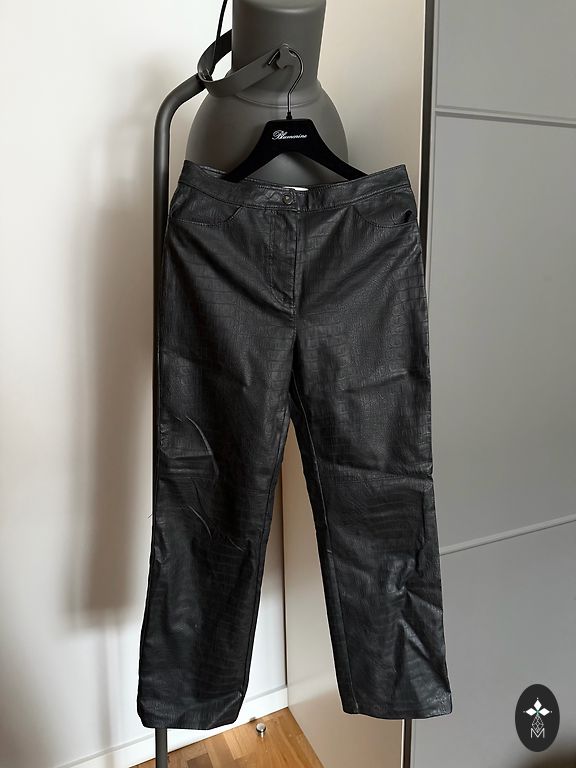 Juodos dirbtinės odos kelnės, dydis 34.
