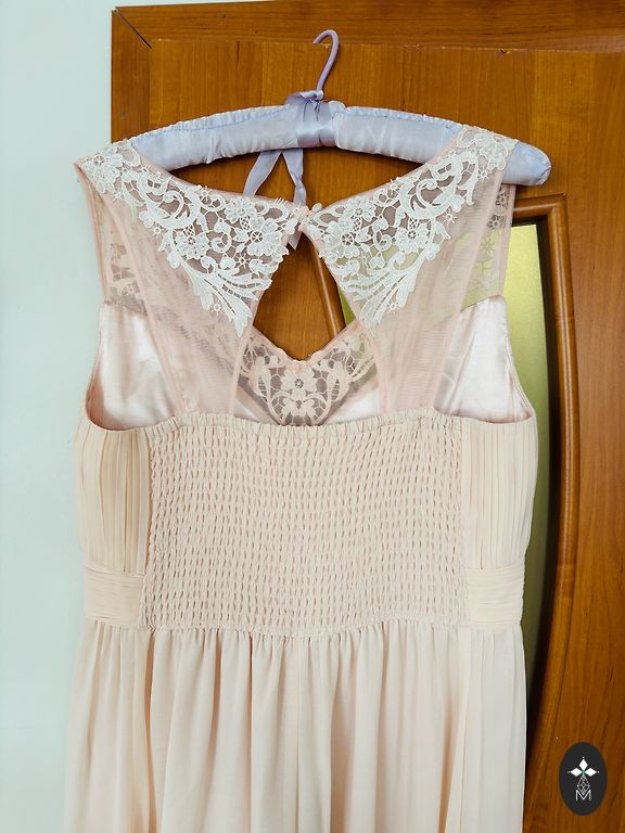 A very beautiful, airy, festive dress. Size M, but oversized, I wore it as L/XL. I don't see any flaws. +shipping