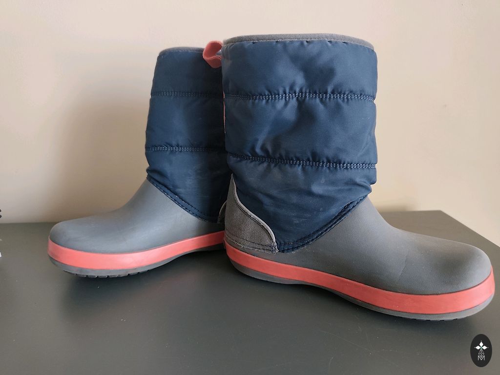 Мой любимый бренд обуви, поэтому я купил их и для сына! Уже который год! Ноги теплые, легко надеваются, хорошо держат влагу! Носки немного изношены, но это не влияет на тепло и сухость ног! Куплены в Boozt! Нам подошли на два года.