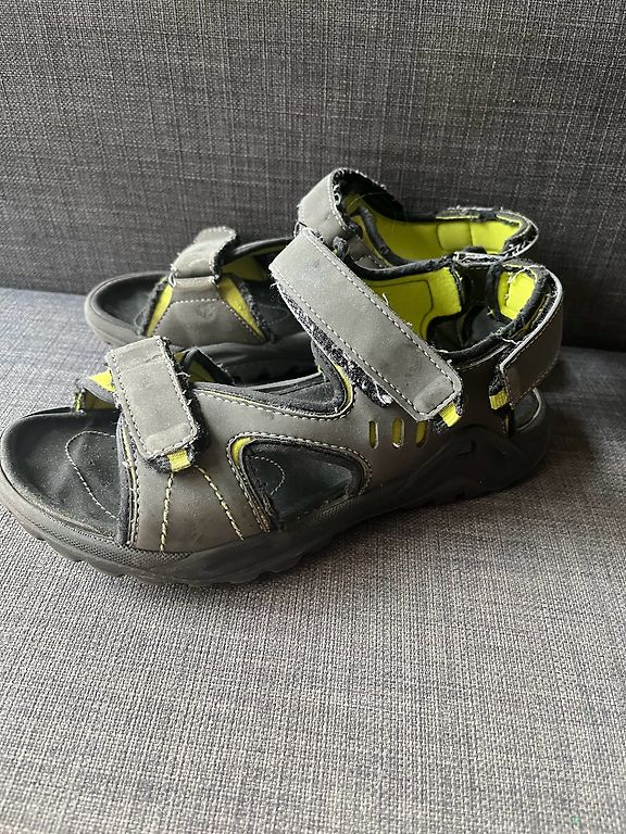Freycoo leather sandals. Used, but definitely still usable. Classic design sandals with a closed toe to protect the toes and a super flexible rubber sole. Easy to put on and close with a Velcro strap. Made from natural leather. Rubber sole that does not stain the floor.