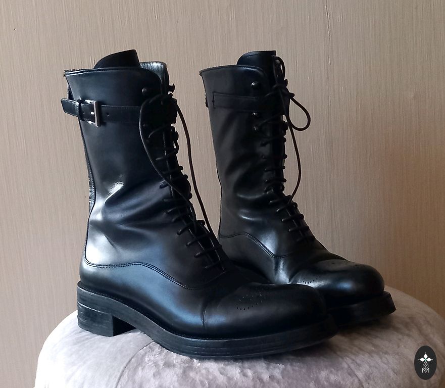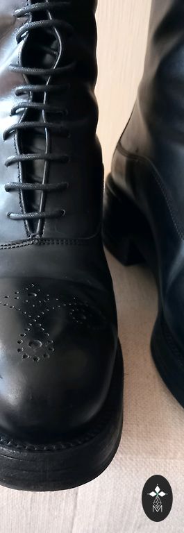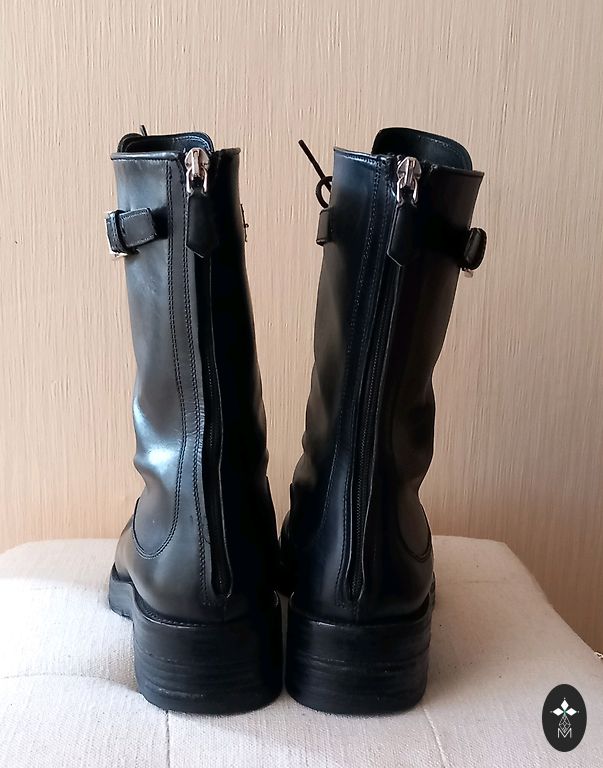 Warm leather ankle boots with sheep wool inside. Thick and stable ribbed sole. The boots are in excellent condition, with slight signs of use on the sole tread and a few minor scratches on the surface.