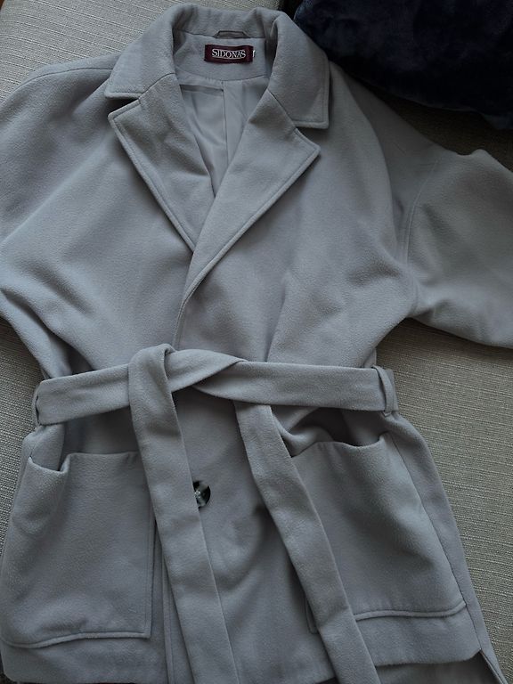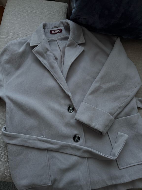 Taisna piegriezuma, puspieguloša silueta starpsezonas mētelis no SINSAY. Oderēts. Ar nelielu, klasisku atlokapkakli.