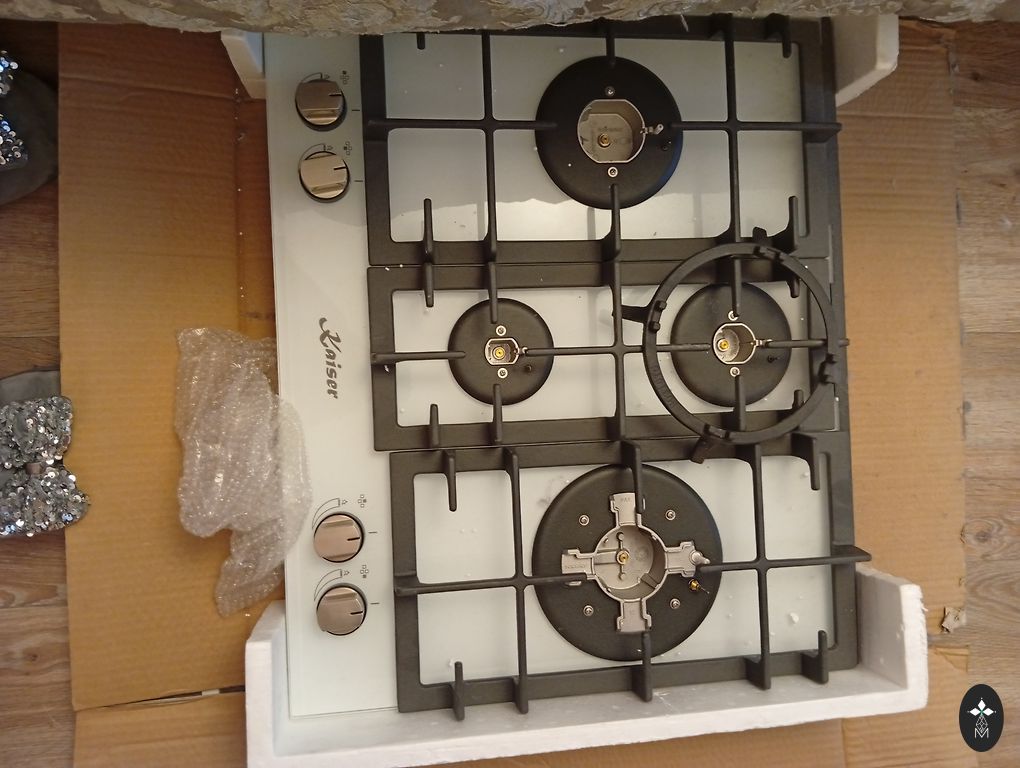 Также доступна черно-белая мраморная кухонная столешница со встроенным местом для установки этой плиты — если заинтересованы, обращайтесь.
