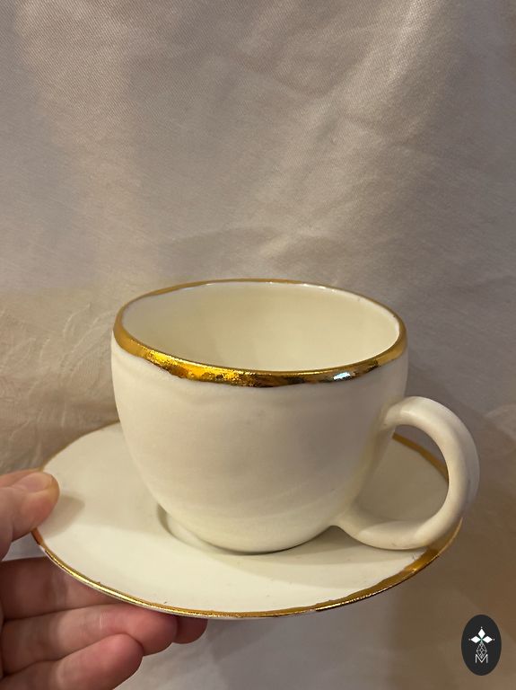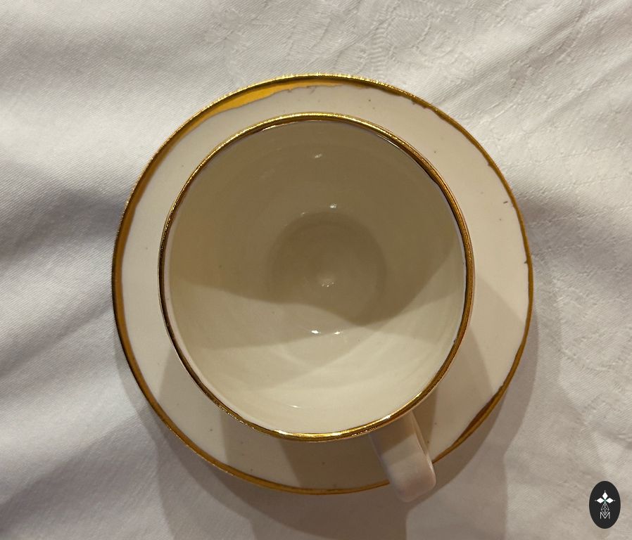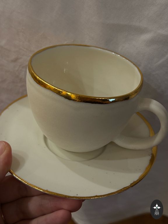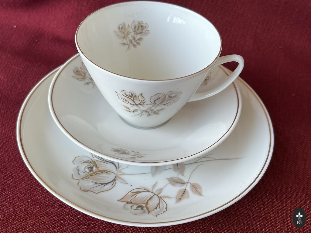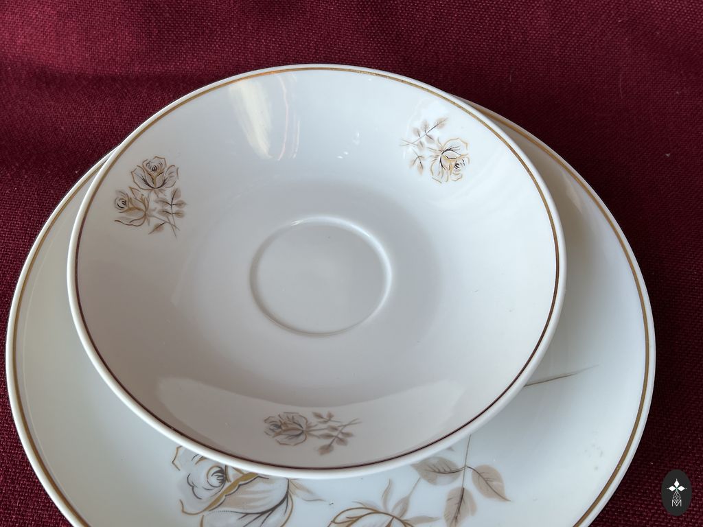 Apburošs trio,ivory glazūra, reljefs,daudz zelta,skaists puķu dekols,praktiski jauns,