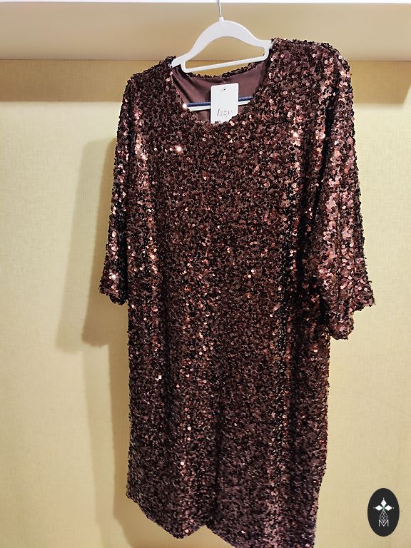 Klasikinė juoda suknelė su sidabriniu blizgesiu.