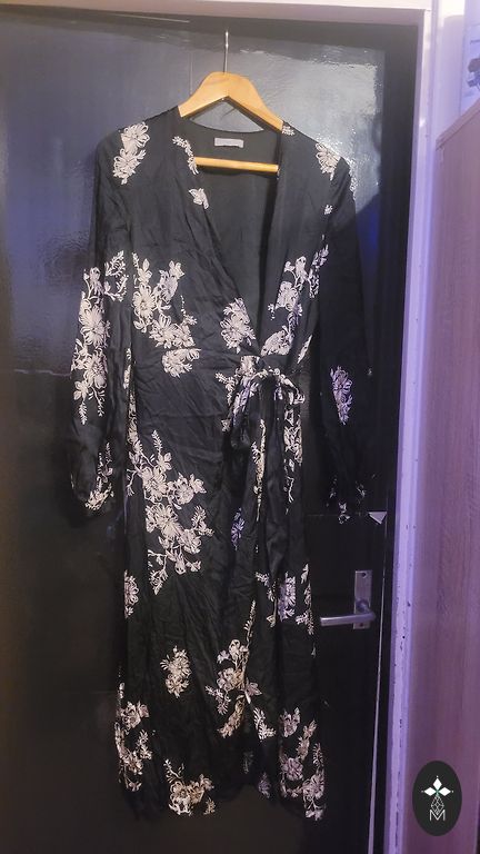 Worn a few times, it will fit both M and S sizes, and there is also a belt that can be tied at the back or front. + shipping.