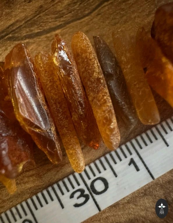 Skaistā un apjomīga dzintara spirāl-veida lase. Atgādinā burvju auga lapu. Krāšņā oranzīgi-konjāka krāsa.