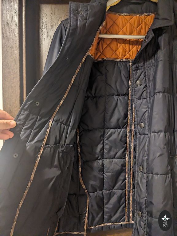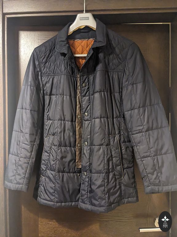 Garums 76 cm, krūtīs 126 cm, pleci 54 cm, piedurknes 71 cm, ar siltinàjumu, bieza jaka. Pie trūkumiem ràvējam pielikts riņķīts, viss stràdà.