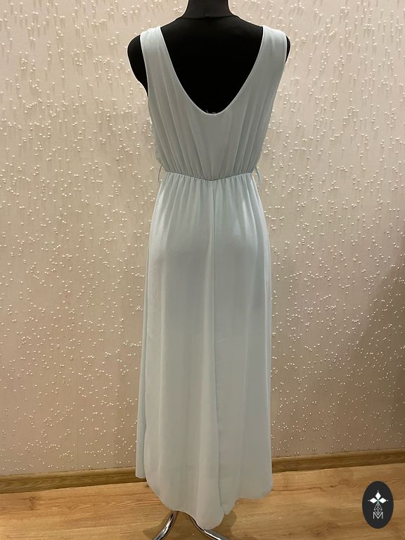 Beautiful, comfortable, flexible knit dress. Heavy, beautifully draping fabric. Back closure with a button. Small ruffle at the bottom of the dress. Bust 120-130, length 120 cm.