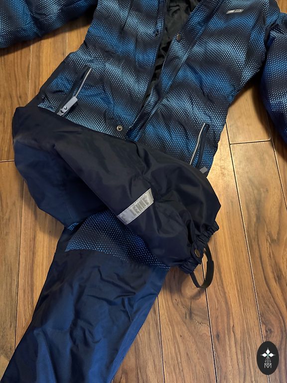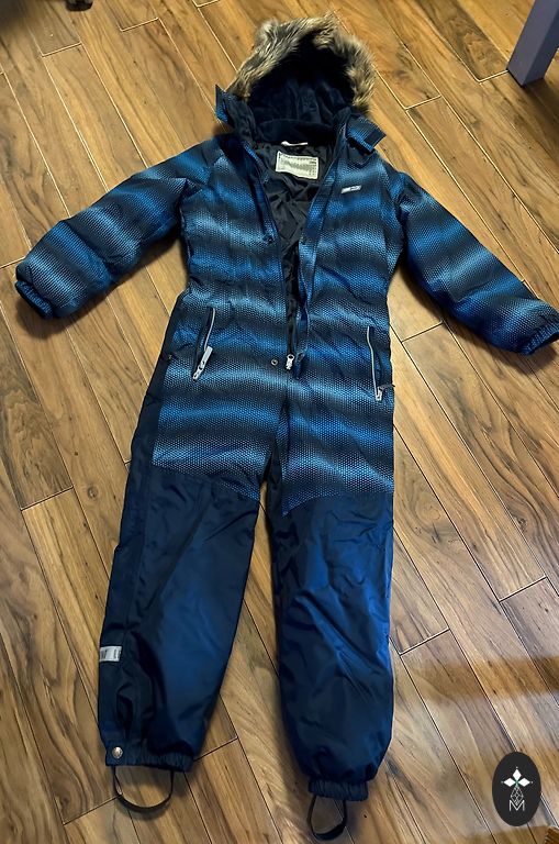Ziemas silts kombinezons ar zābakiem un dūraiņiem.