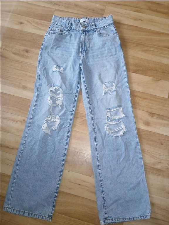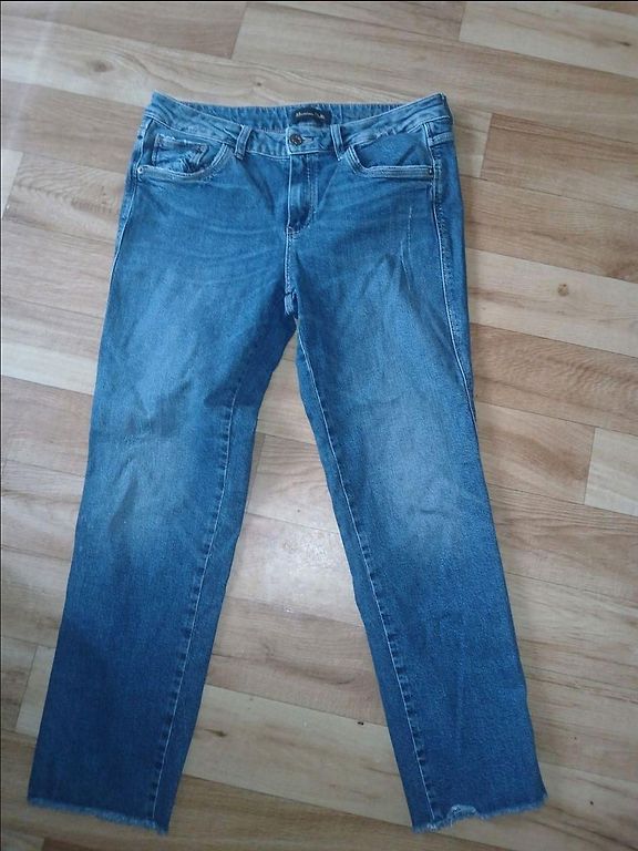 Müün paar korda kantud teksapükse, heas seisukorras, defektideta. Sääre pikkus 105 cm ja vööümbermõõt 34 cm. Teksadel märgitud suurus 36. Saatmiskulud katab ostja.