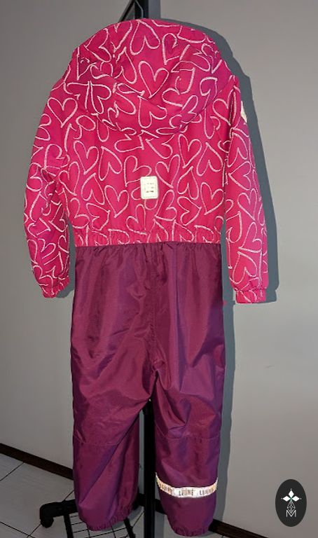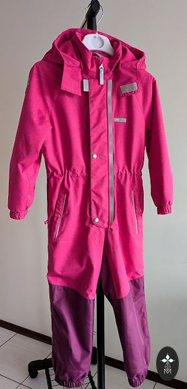 Twice worn overall that will provide both warmth and dryness for the child! Softshell is a durable, breathable, windproof, and waterproof fabric! Suitable for size 110-116.