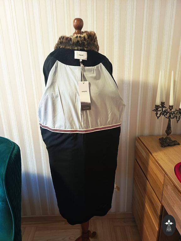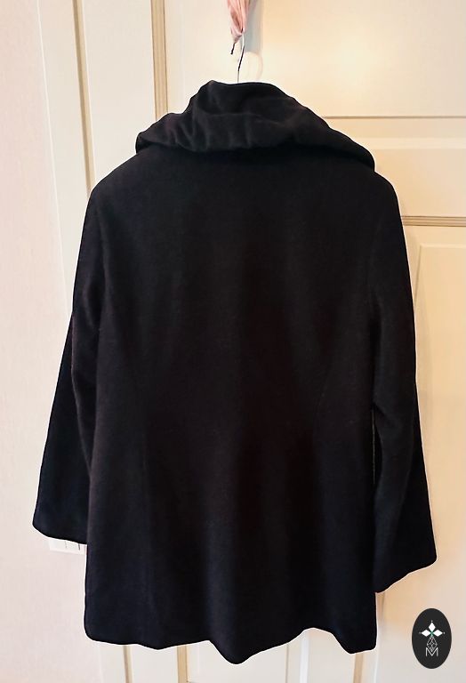 Skaists, silts un garš vilnas metelis. Sūtīju no Italijas, diemžēl izmers par lielu (man pašai m/l). Ideāli būs uz l/xl. Mala pār malu pārliekas, uz spiedpogām. Josta nav paredzēta. Aizmugurē sklelums. 50% vilna. Izmēri: Garums no pleca līdz apakšai - 122 cm