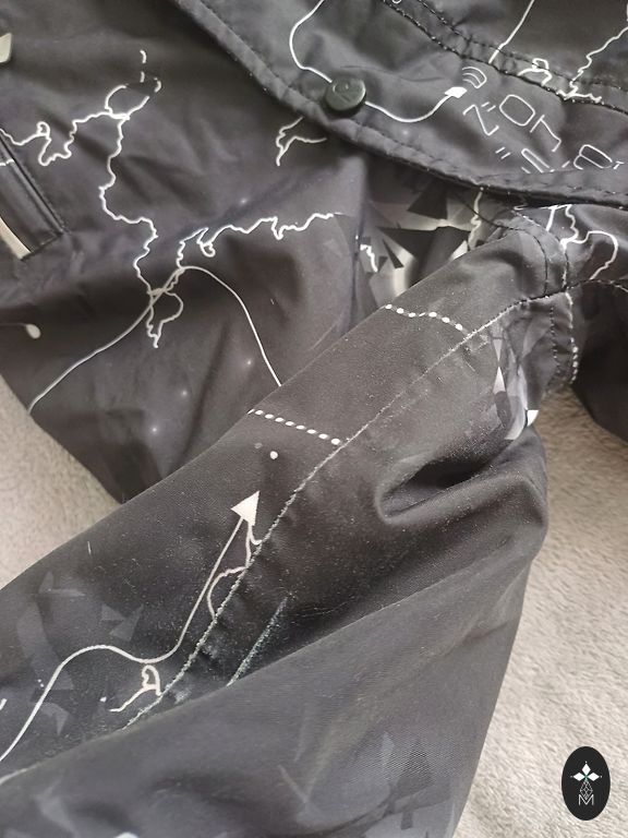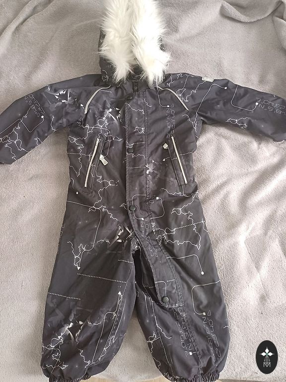 Puikios būklės, išskyrus kojos gumijas, žinoma, audinys nusitrynęs (paskutinėje nuotraukoje) ir minimalios įbrėžimai ant atšvaitų prie kelių. Nurodytas dydis 80 + papildomai.