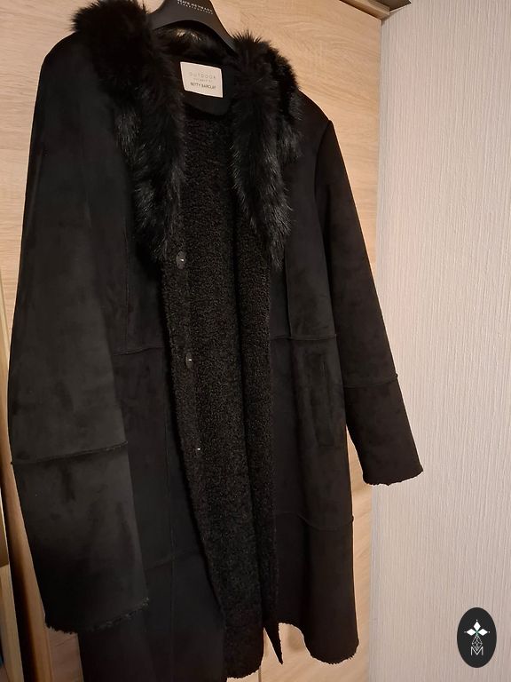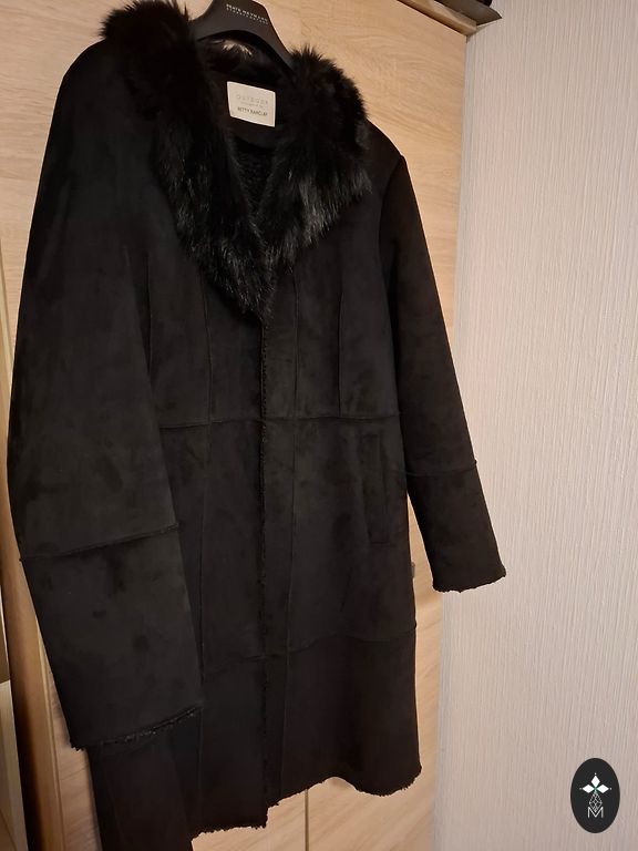 Silts pus vilnas ne-biezs mētelis, garums -110 cm, zem padusēm 54x2cm, gurnos 58x2. Taisns piegriezums. Aizmugurē šķēlums. Defektu nav. Sūtu