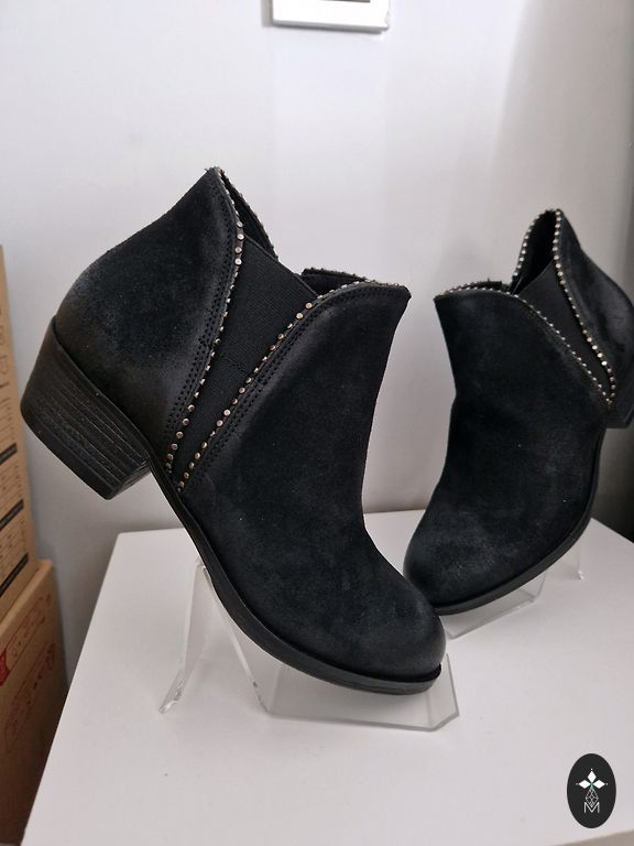 Замшевые черные ботинки, надетые один раз в театр. Удобные и элегантные. По бокам завязывается замшевая лента. Могу отправить фото заинтересованным. После травм больше не могу носить. Супер качество.