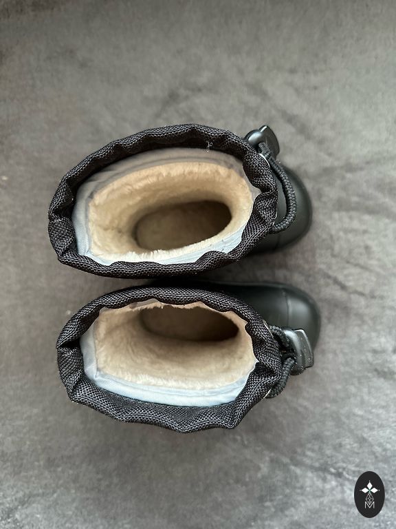 Used rubber boots, with slight insulation inside. In the last picture, you can see that the toe is scuffed at the bottom. Very good quality, wide toes so that toes are not squeezed.