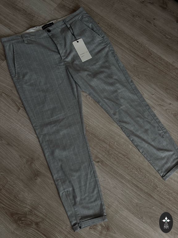 New Banana Republic pants brought from the USA, flexible, lightweight, dark gray with an additional zipper pocket next to the pocket, size 38/32, 100 cm waist, leg 112 cm, inseam 81 cm.