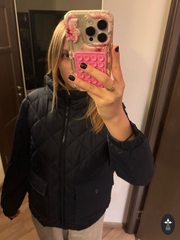 Viegla, plāna sieviešu virsjaka. Viduklis ar regulējamām auklām, piedurknes var atpogāt, 2 kabatas ar spiedpogu, kapuce. Norādīts L izm., bet varētu derēt arī XL.