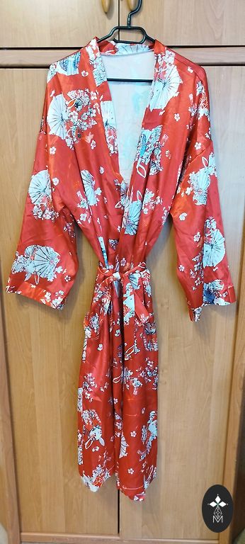 Brought from Japan. Silky fabric, pleasant to the body. With a belt and pockets.