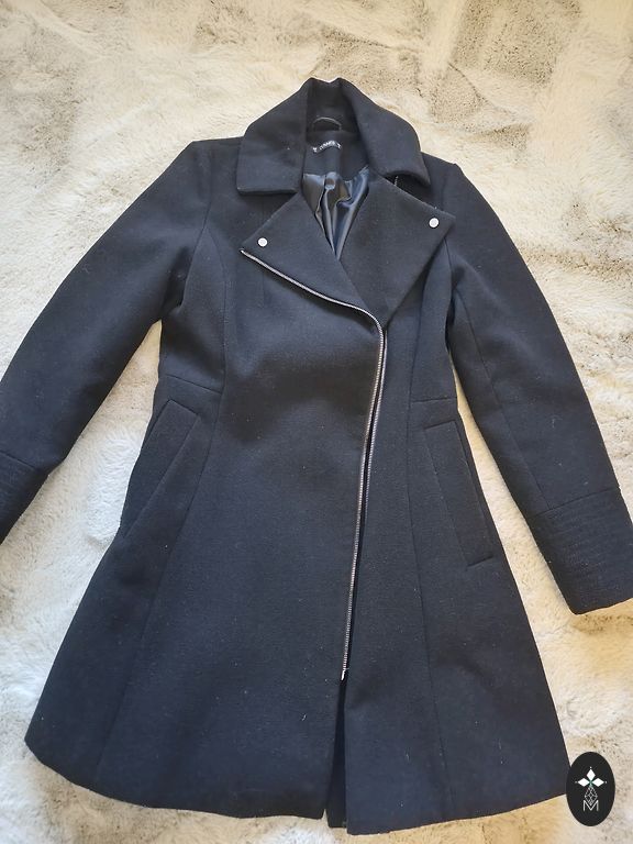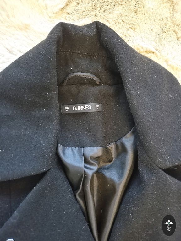 Mētelis tumši zilā, gandrīz melnā krāsā, aizpogājams. Izskatās kā oversize žakete, audums nav pārāk biezs. Nopirkta UK izpārdošanā, bet uzvilku labi, ja pāris reizes.