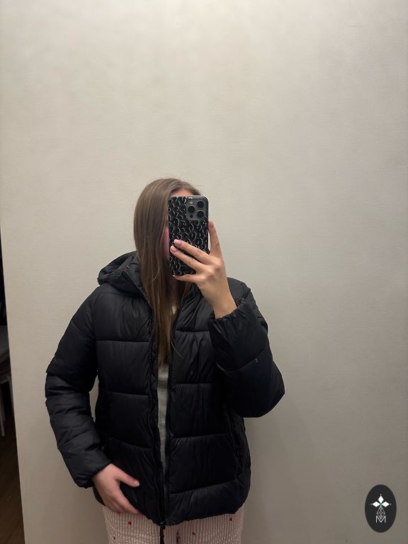 ZARA ļoti silta ziemas jaka uz birkas XS. Brīva piegriezuma oversize modelis XS izmēram.,ta kā derēs arī L izmēram,jakas garums 85cm,krūtis 60,kapuci var noņemt.