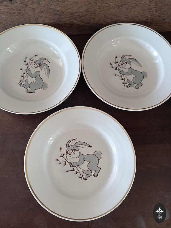 Ant vienos didelės lėkštės yra nuskilimas. Likusios be defektų.