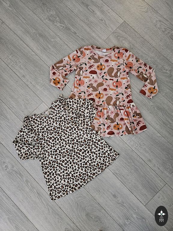 Kreemikad kuldsete niitidega, jõulupunane ruuduline, hallikas roosa volangidega ja kohevate varrukatega, teksariidest kleit (igaüks 5 €) ja pruun ruuduline (4€).