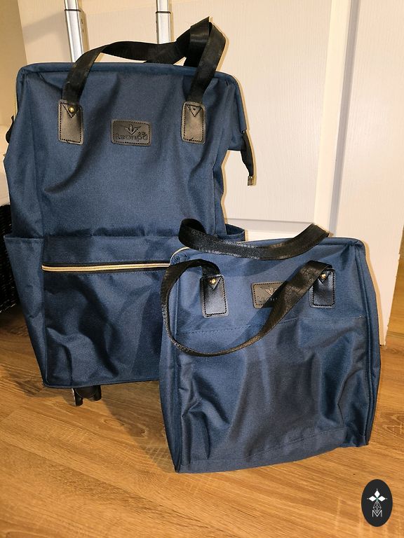 - Riteņi griežas 360°, rokturis un rāvējslēdzēji darbojas perfekti.
