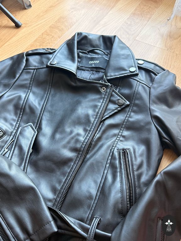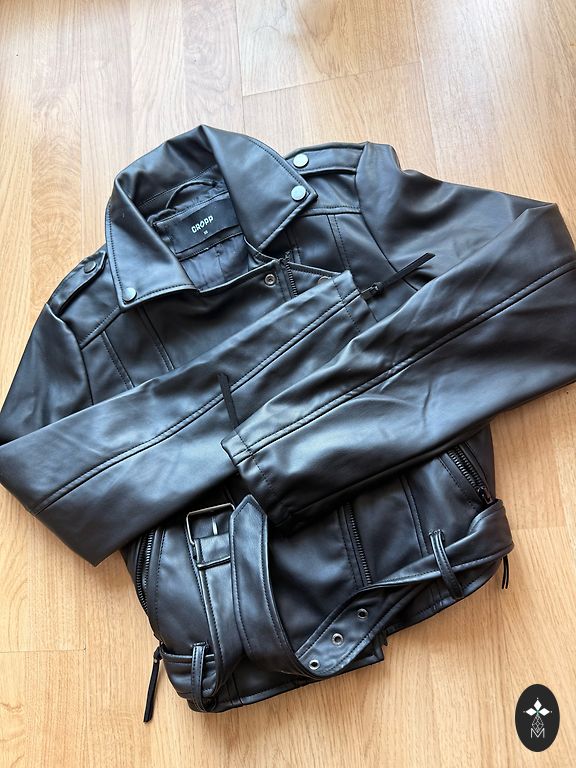 I offer a stylish oversized eco-leather jacket made in Italy. Classic black with a white "Wanted" inscription on the back – a modern and bold accent that gives the jacket a special character.