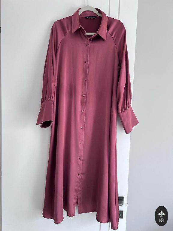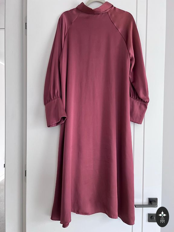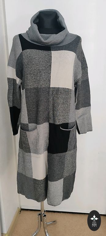 Bust 50-52x2, waist on elastic stretches up to 112, has a belt, length 87