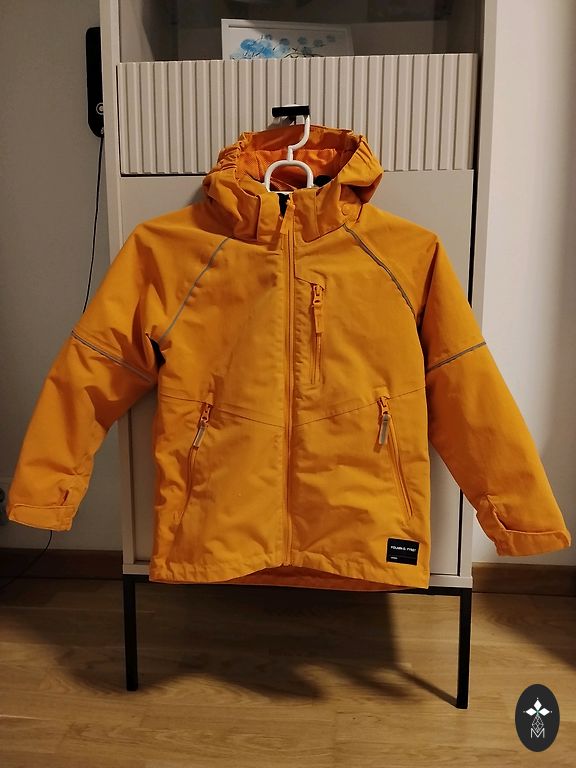 Labs mētelis, interesantā košā koraļļu tonī. Piemērots rudenīgam laikam. Uz muguras ir mazi pleķīši.