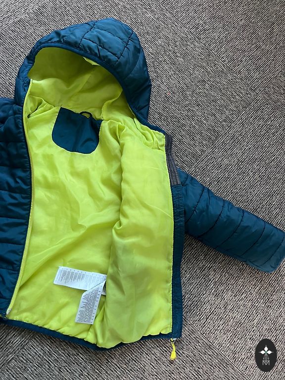 9-10 лет. Внутри полиэстер. На кармане рукава нет части кнопки (видно на фото). Но это не портит общий вид.