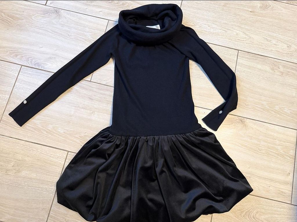 Stretchy suede-style dress. Would look great on someone with a full bust. Length is 82cm, width under the arms is 46cm when unstretched, and waist is 37cm. New item condition.
