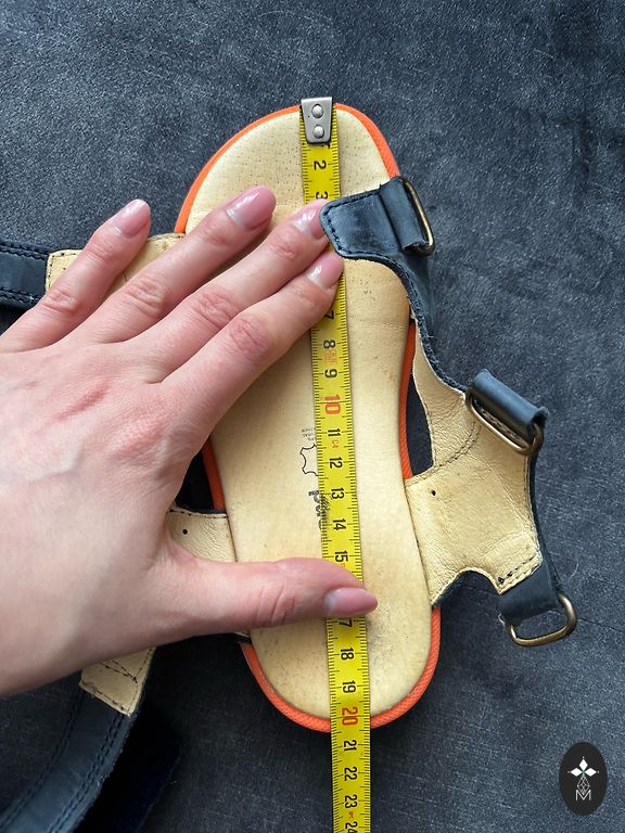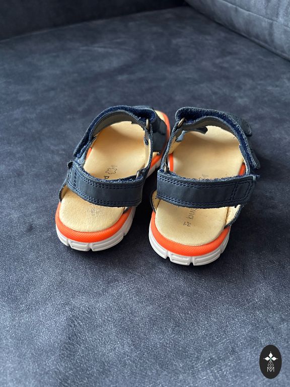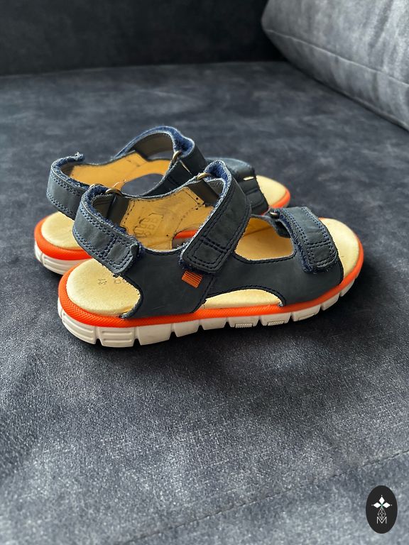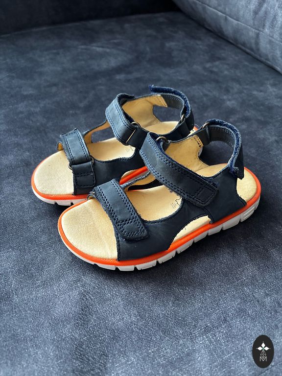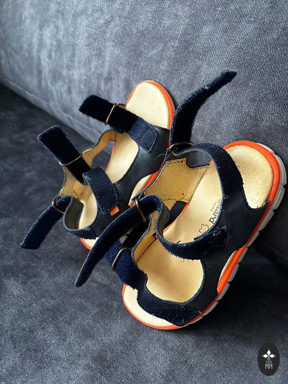 Sandales no dabīgās ādas uz 28. izmēra kājiņu. Ļoti labā stāvoklī, pa ielu nav nēsātas, valkātas bērnudārzā.