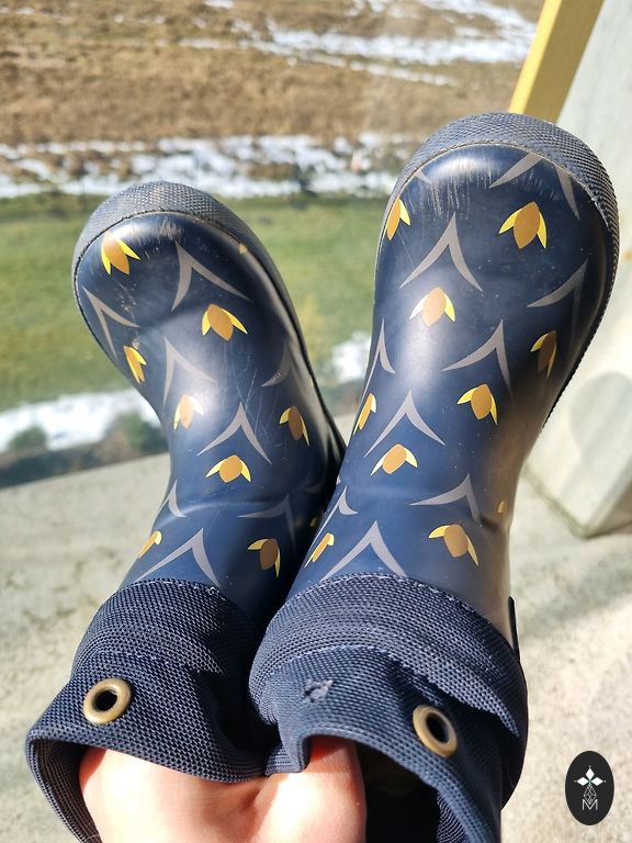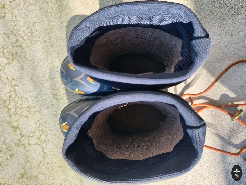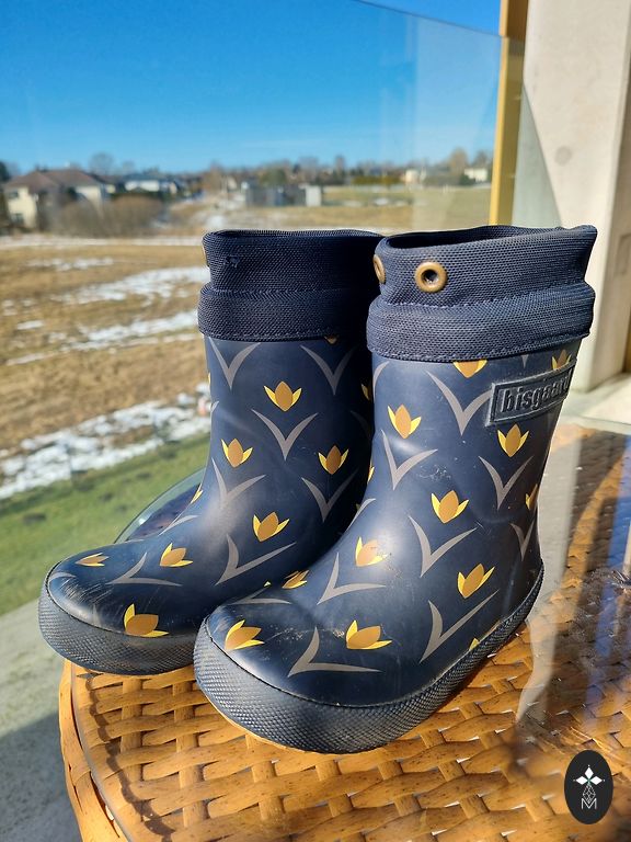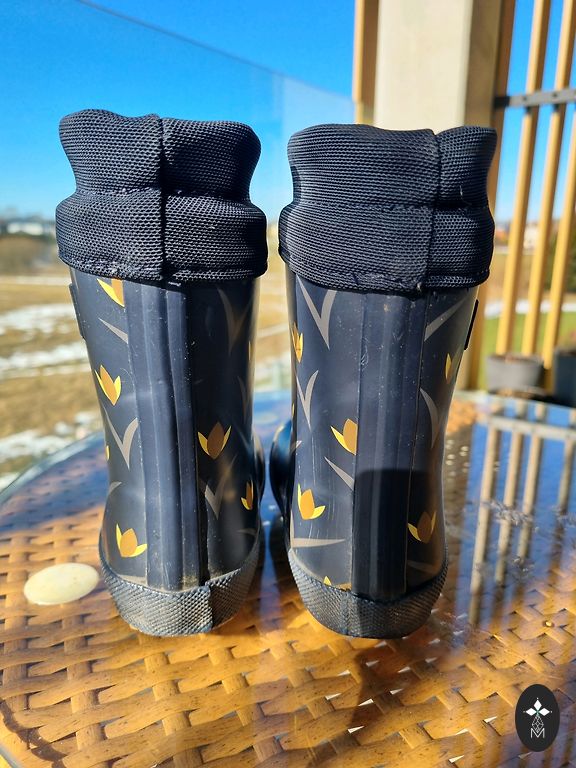 Šiltinti guminiai batai, skirti vėsiam ir lietingam orui.