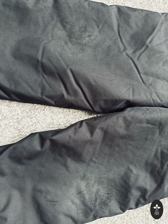 Huppa 92. suuruses trakspüksid normaalses seisukorras. Kaenlaaluses osas on materjal tõusnud ja põlvedele veidi kulunud. Nähtav pildil.