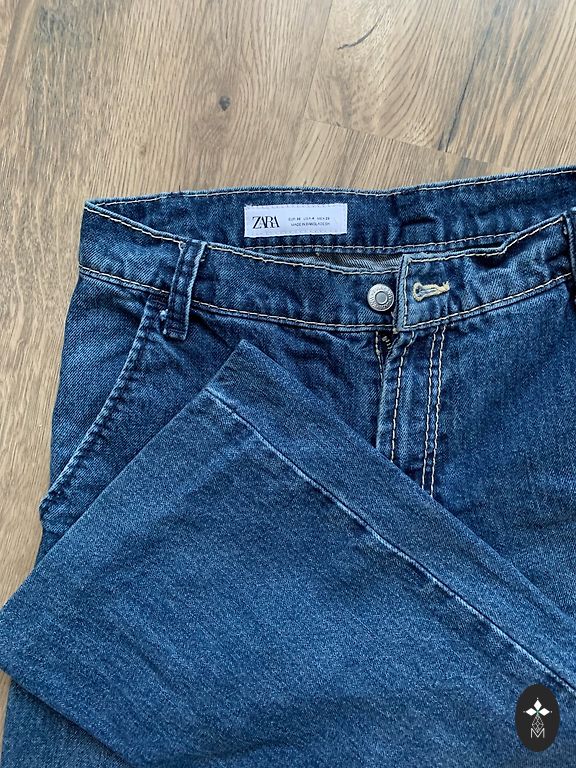 Джинсы Zara, полностью украшенные кристаллами / бриллиантами. Очень красиво сверкают, кристаллов не мало. Хорошо подойдут для высоких девушек, на мне при росте 173 см брюки были даже длинноваты. На стабильный размер S, допускаю даже немного в сторону M. Купила здесь, но мне не подошли :( . Один из бестселлеров Zara, который был распродан везде.