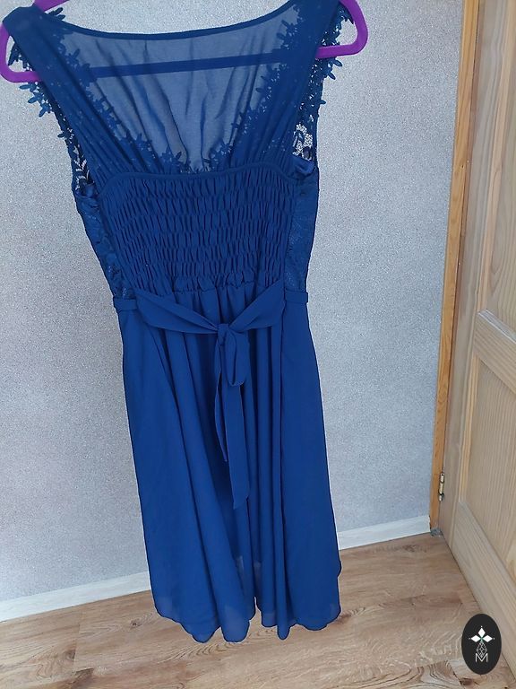 Lieliskā stāvoklī, vienīgais defekts ir ieplēsums iekšpusē oderē, bet no ārpuses, protams, nav redzams. Pabieza, stingra auduma, nestiepjas. Ar oderi. Uz birkas 38/M, bet neatbilst, vairāk uz S.Skati mērus: garums 96cm, paduses 42cm, viduklis 35, gurni 47cm. Aizmugurē rāvējslēdzis, auduma faktūra - tādi mazi pušķīši. Sūtīšana nav cenā.