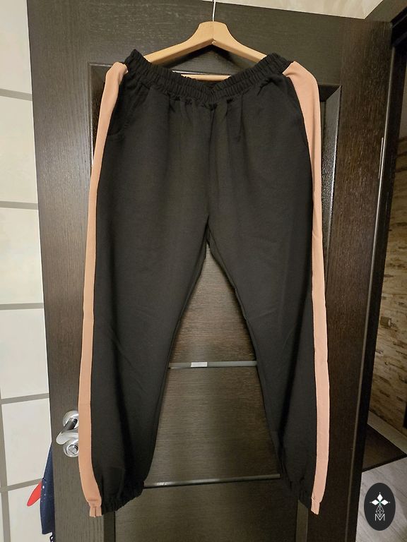 Striukės nesitempiant krūtinės atstumas tarp pažastų 70 cm, ilgis nuo peties 65 cm. Kelnių ilgis 97 cm, juosmens gumija nesitempiant 38 cm, tempiasi iki 65 cm (1/2).