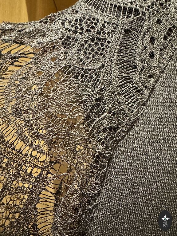 Dizainas: Suknelė-futliaras (arba tiesaus kirpimo) su efektinga atlaso audinio įdėklu viršutinėje dalyje ir daugiasluoksniais raukiniais ant krūtinės, suteikiančiais gaminiui prabangos ir žavesio.