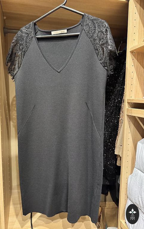 Parduodama prabangi juoda suknelė iš žinomo prekės ženklo KMX, kuris specializuojasi elegantiškos ir šiuolaikinės moteriškos aprangos srityje.