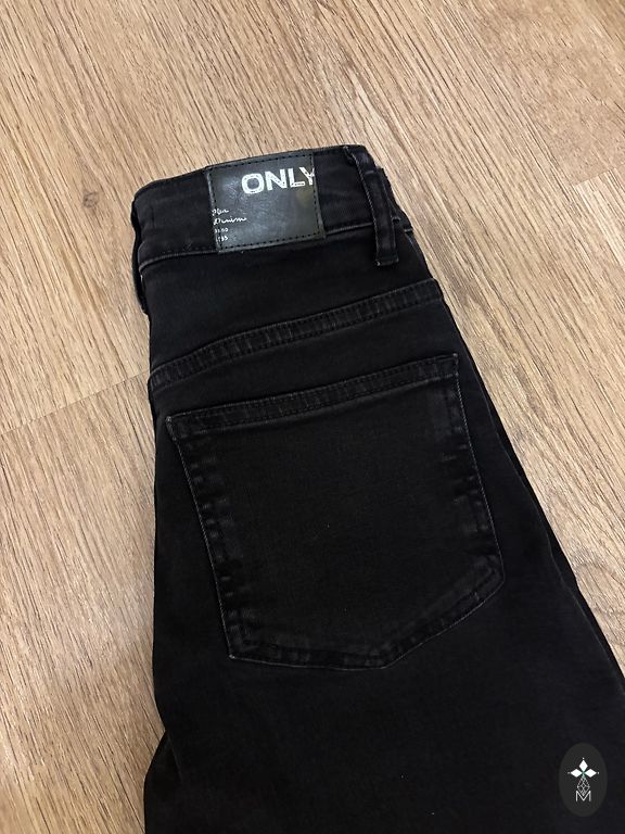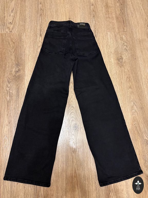 Garums 91 cm, iekšstara 64 cm, jostasvietā 33 cm, augsta jostasvieta. Elastīgas